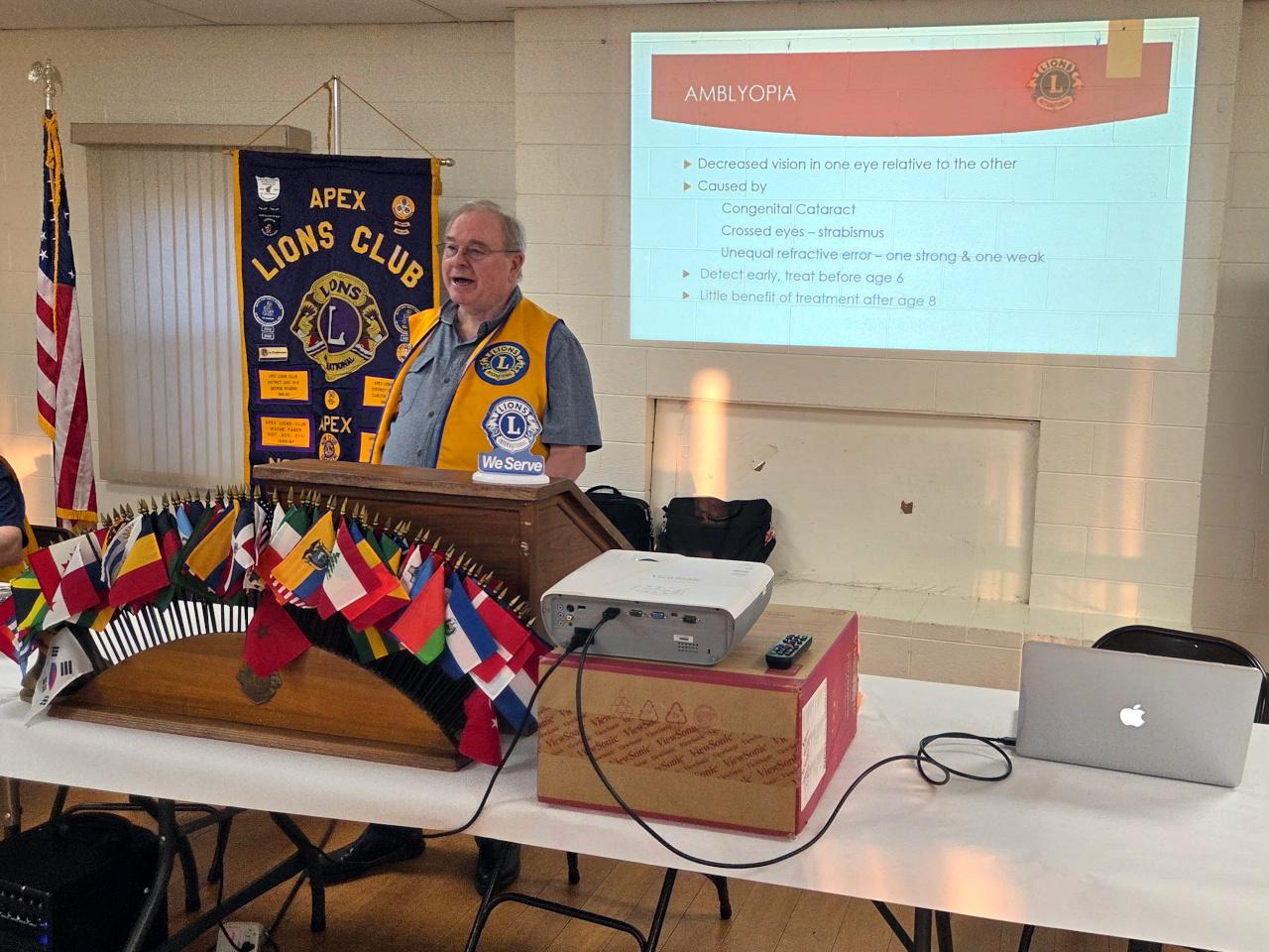 The Apex Lions Club has proudly owned a vision screening device for about 10 years. Over the years, we have used it at many local events such as Apex Night Out, now known as Touch-A-Truck, PeakFest, community health fairs, and even at schools like Saint Mary Magdalene. These efforts have already helped many children, and now, with this new training, we are ready to do even more.